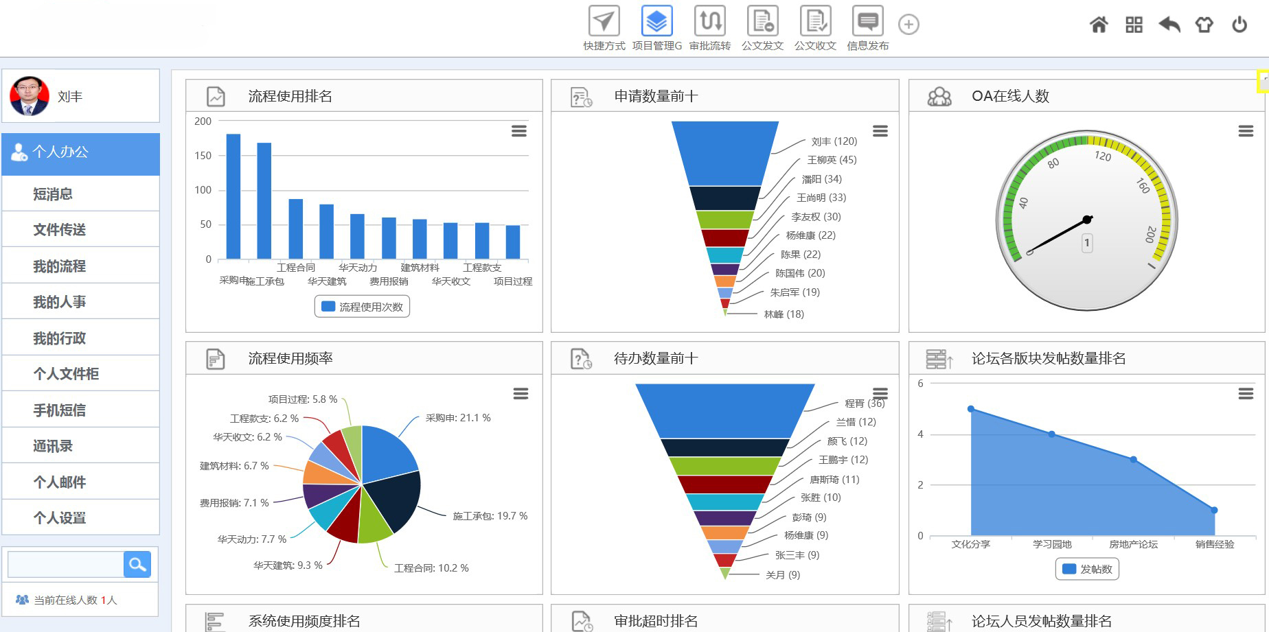 為每一個(gè)員工和領(lǐng)導(dǎo)提供個(gè)人專(zhuān)屬辦公桌面,將個(gè)人需要閱讀的信息、待辦的工作事項(xiàng)、待批的流程請(qǐng)示、待閱的文件匯總推送到個(gè)人工作桌面上,供員工或領(lǐng)導(dǎo)快速了解和辦理,真正實(shí)現(xiàn)“事找人”的辦公模式。