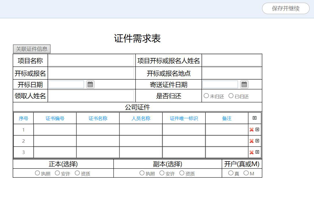 (2)對(duì)證件資源的流動(dòng)過程進(jìn)行規(guī)范化管理,包括證件的借出、歸還、注冊(cè)/增項(xiàng)/年檢等,方便了解每一個(gè)證件狀態(tài),證件所在項(xiàng)目、責(zé)任人等,以實(shí)現(xiàn)公司證件資源利用效益最大化;