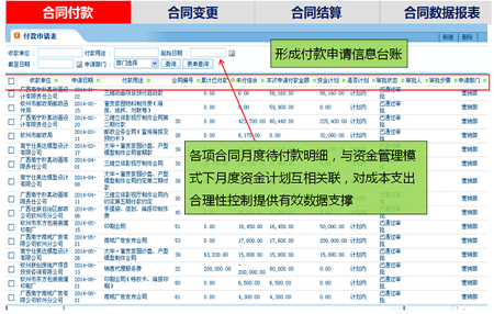 (科目類別、合同規(guī)劃、供應(yīng)商管理、合同登記、合同審批、合同付款、合同變更、合同結(jié)算、合同臺(tái)賬以及與合同業(yè)務(wù)數(shù)據(jù)相關(guān)的各類明細(xì)及統(tǒng)計(jì)報(bào)表)