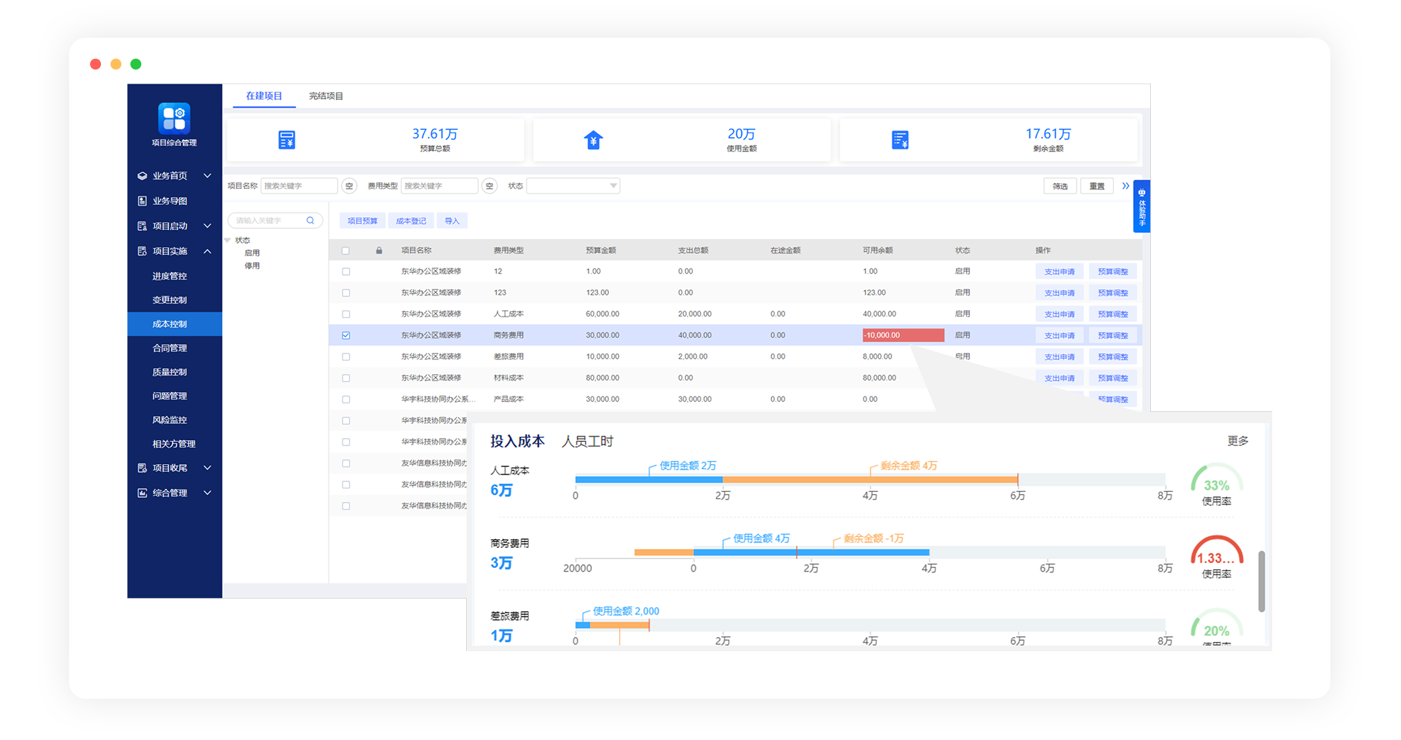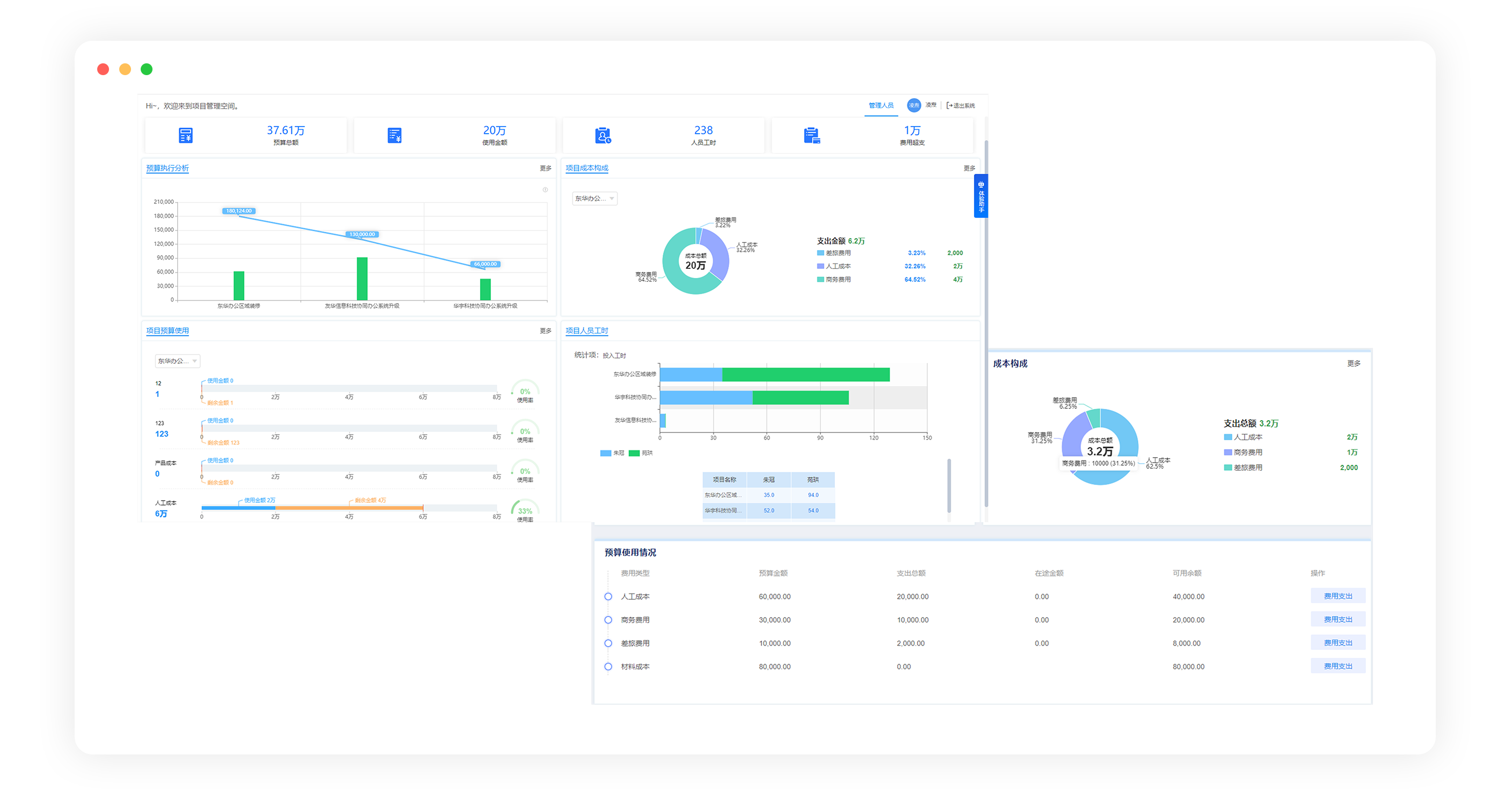 支持從單項資源、團隊資源、整個項目實際成本與預(yù)算對比分析等維度,進行成本分析,哪些版塊成本高、哪些成本可以再優(yōu)化清楚掌握。
