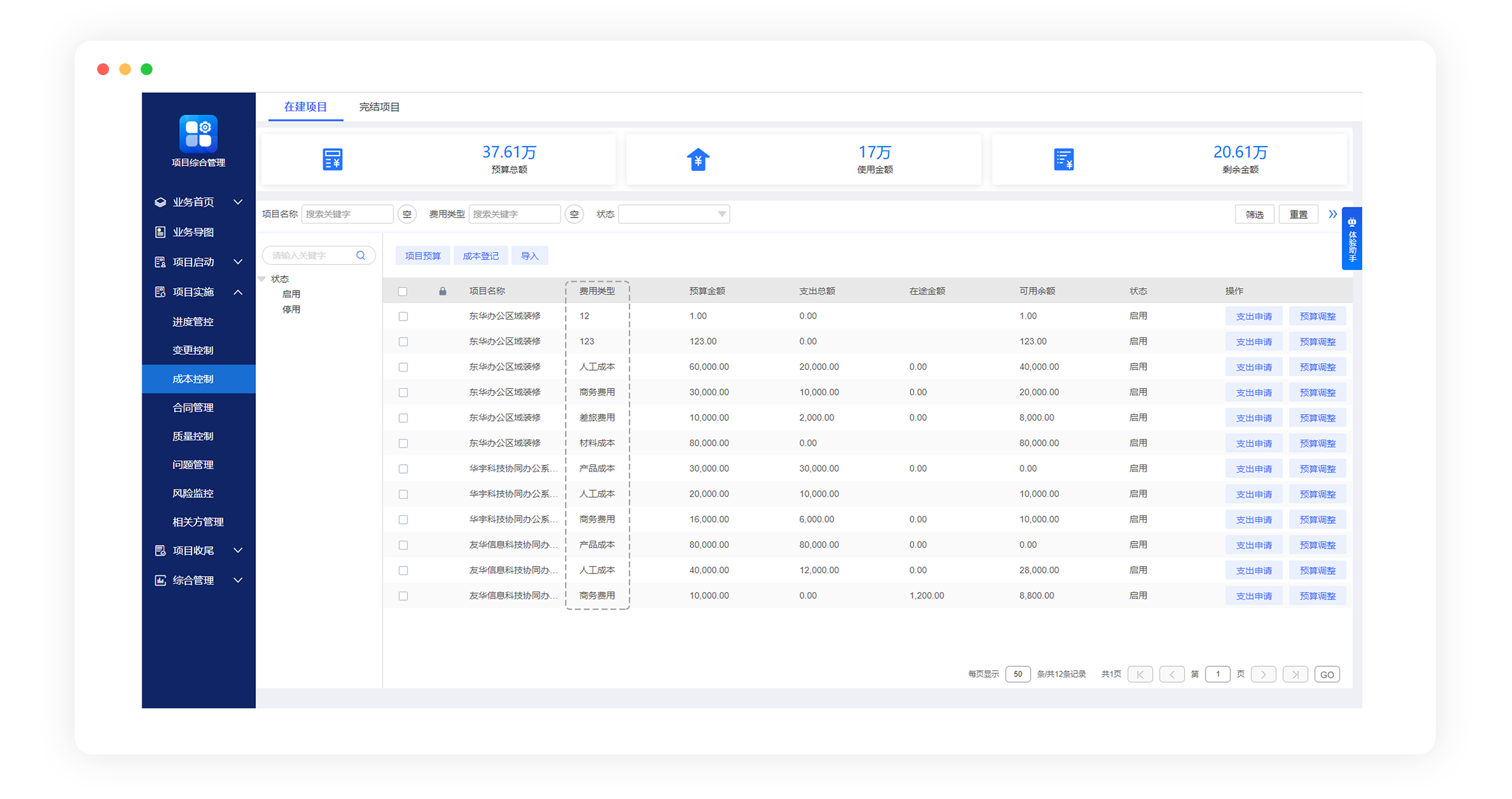 支持根據(jù)項目需求及企業(yè)費控規(guī)范靈活編制項目預(yù)算、自定義費用類型,也可以根據(jù)資金投入及項目需求,自由增加新的預(yù)算編制。