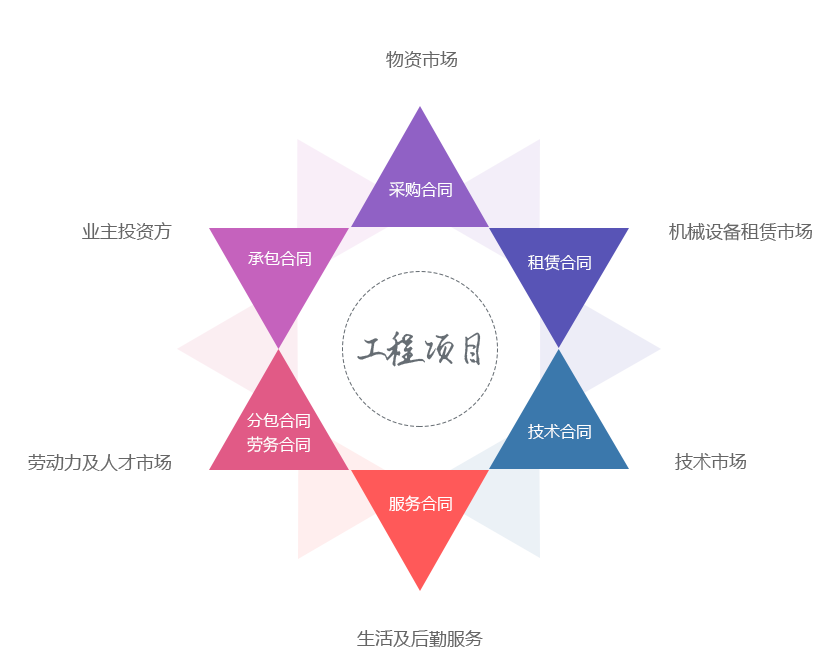 以合同管理作為起點:首先作合同分析,它控制著整個工程項目管理工作;合同管理本身由合同創(chuàng)建、審批、預(yù)警、結(jié)算、支付、變更、交底等組成。